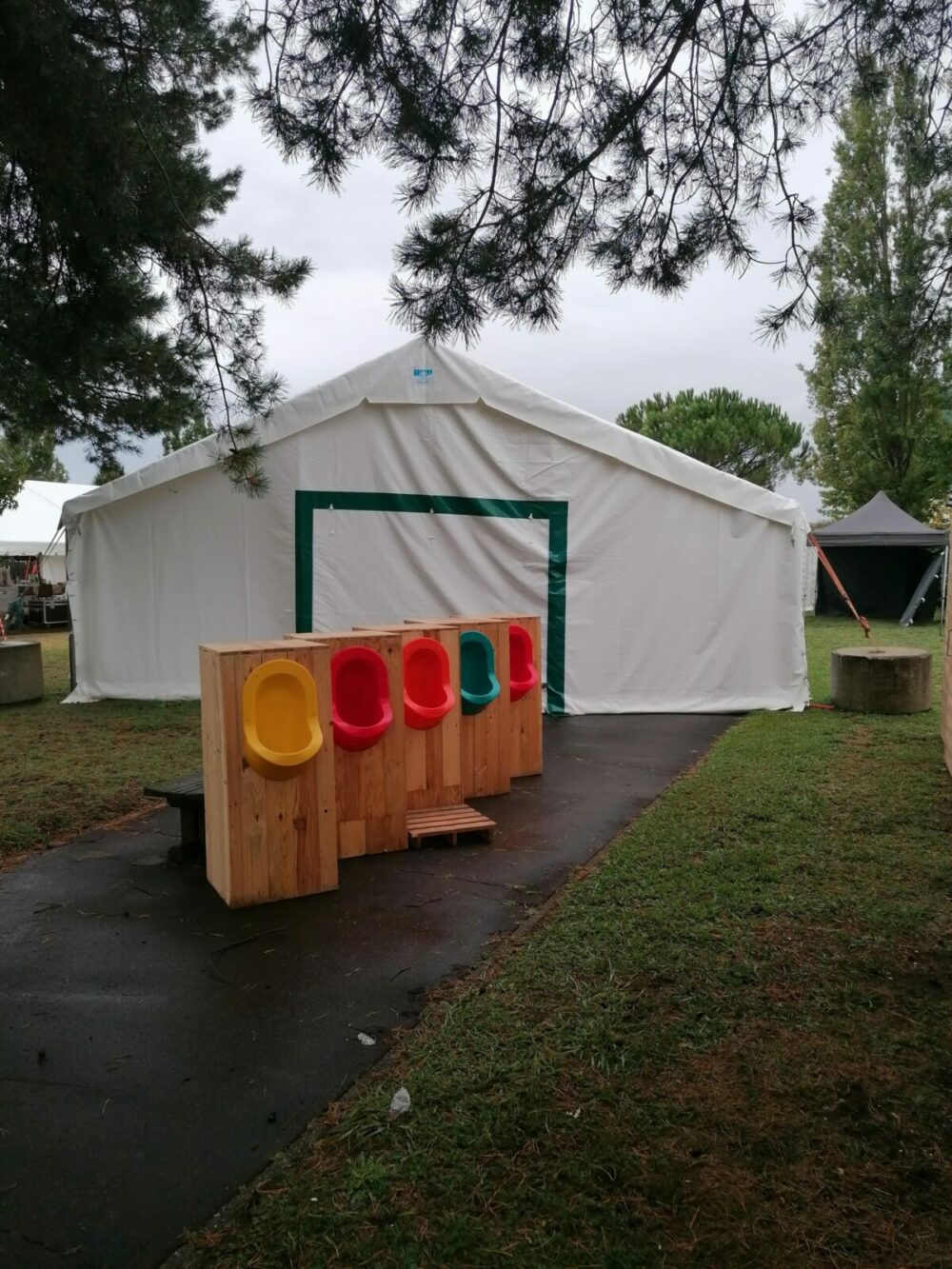 Cet ensemble inclus : - 2 Toilettes sèches PREMIUM sur remorque - 1 lave-mains autonomes, 1 miroir et 1 corbeille - 1 urinoir hommes